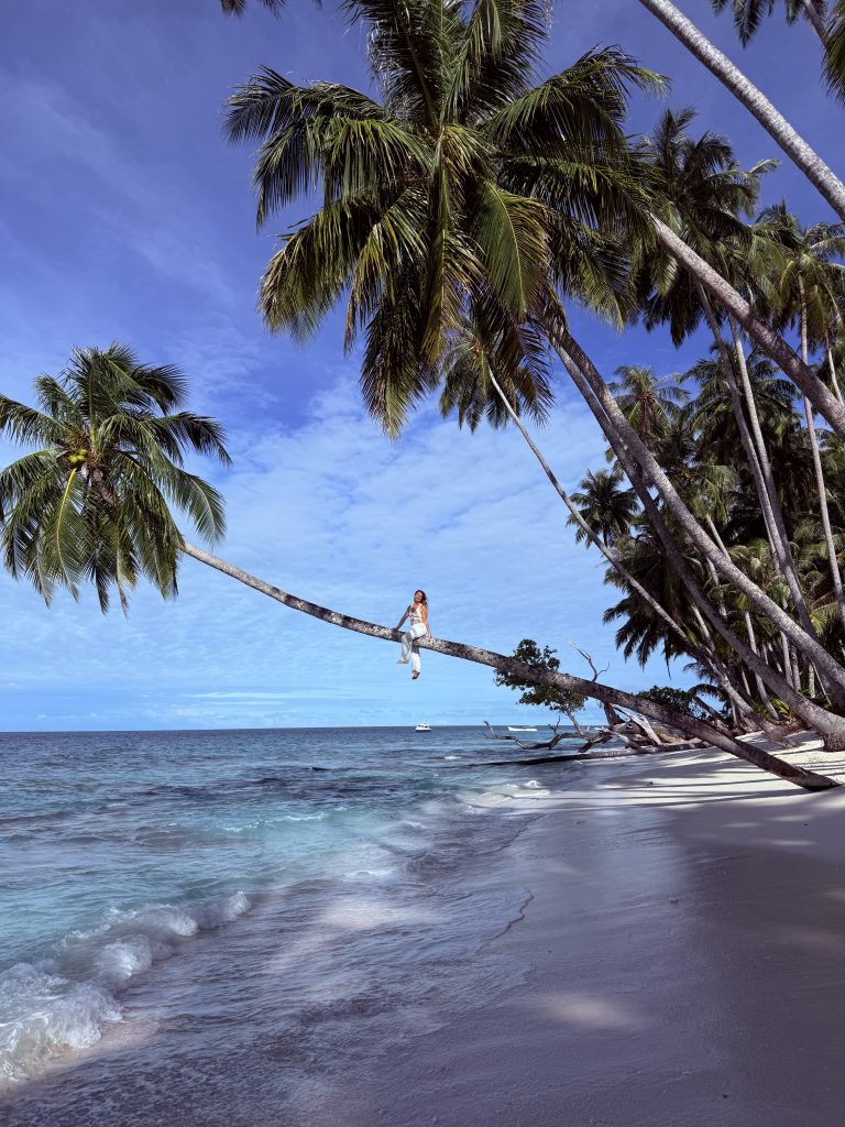 Getting there was no small feat: two long flights, an overnight hotel stay, another flight, a two-hour drive over potholed island roads, and finally a sail across open waters. By the time we climbed aboard the boat, exhaustion was real — but then came Captain and Bobby, the island’s local host, beaming with warmth and generosity. Their welcome swept away our tiredness. Nothing, though, could truly prepare us for stepping onto Pinang’s white sands.